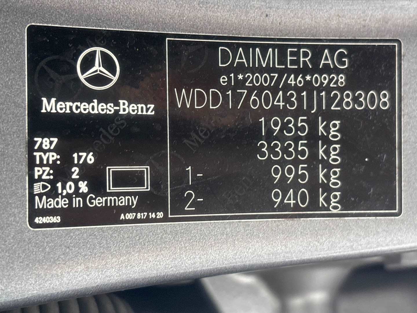 Fahrzeugidentifikationsnummer (FIN) WDD1760431J128308