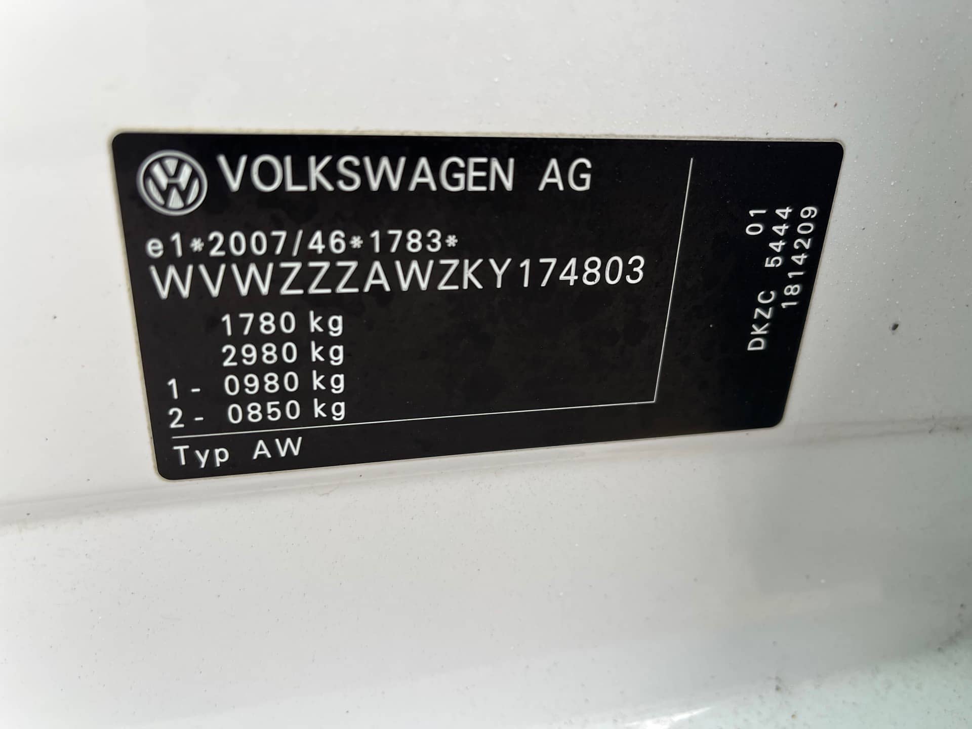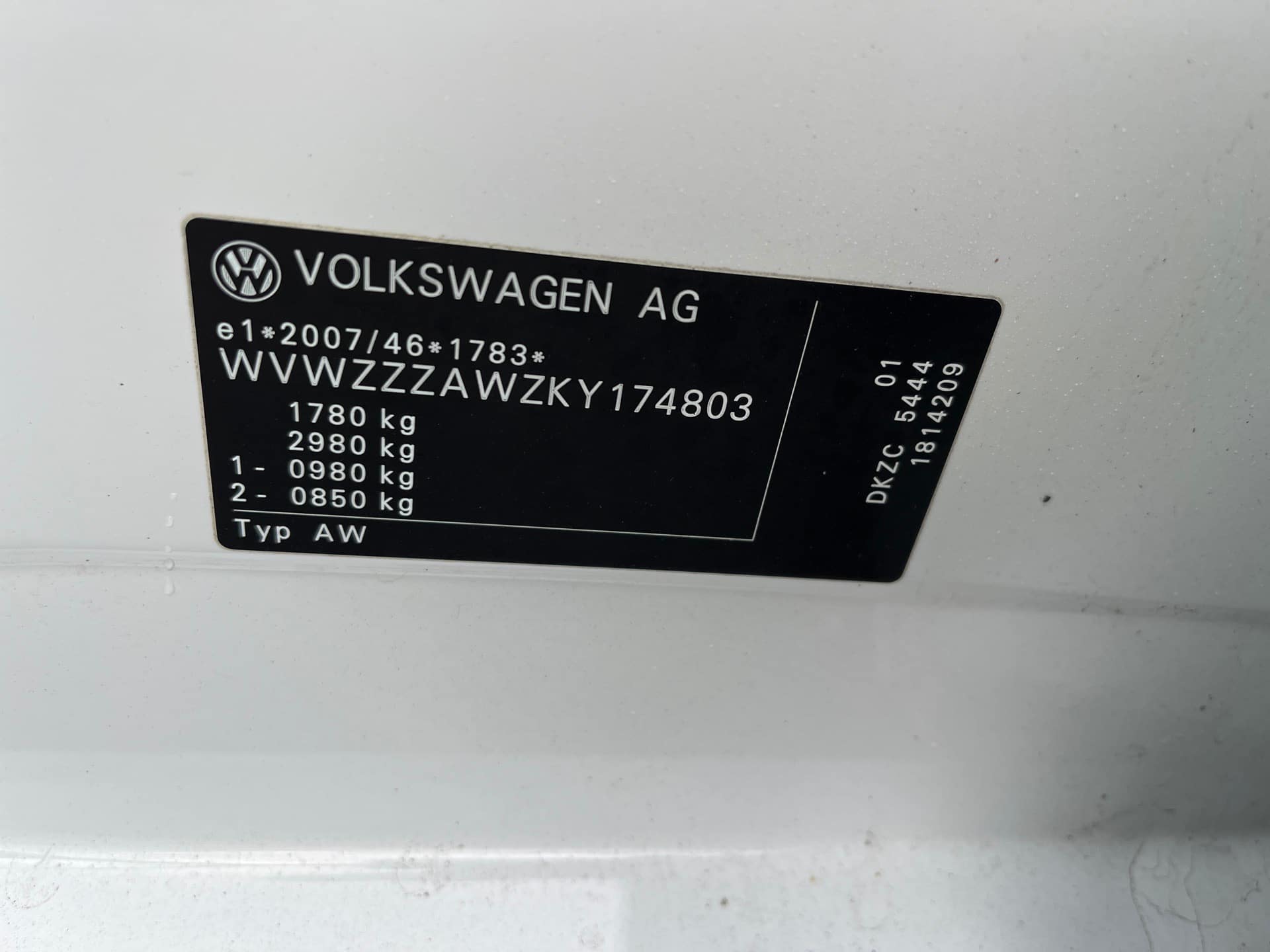 Fahrzeugidentifikationsnummer (FIN): WVWZZZAWZKY174803