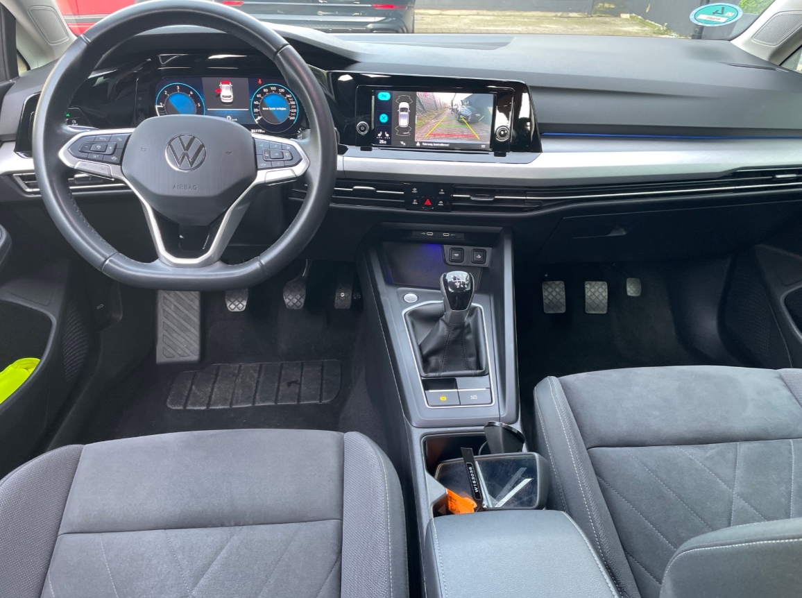 Ein hochmoderner Golf, bestens ausgestattet und ausschließlich in Vertragswerkstätten gewartet. Er hat nur einen Vorbesitzer und eine lückenlose Historie, inklusive regelmäßiger Wartung und TÜV bis 06/2026. Der 150 PS starke Dieselmotor bietet einen niedrigen Verbrauch (4,3 l/100 km WLTP), und die modernen Ausstattungsmerkmale machen ihn ideal für den täglichen Gebrauch – komfortabel und sicher. Er wurde zuvor als Fahrschulwagen genutzt, was sich in der regelmäßigen, aber fachgerechten Nutzung widerspiegelt.